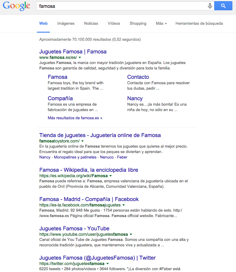 Crear perfiles en diferentes redes sociales y publicar contenidos entre una y dos veces por semana te ayudará a que cuando alguien busque la marca de tu empresa o de tus productos, aparezcan estos resultados como relevantes. Esto, que parece una tontería, no lo es para nada, puesto que te permitirá controlar los resultados que aparecen en un buscador como Google y sobre todo, evitar que pueda aparecer información negativa de tus marcas en páginas de terceros que no controlas, lo que podría suponer un alto coste para nuestra imagen y echar por la borda parte de nuestros esfuerzos en marketing.