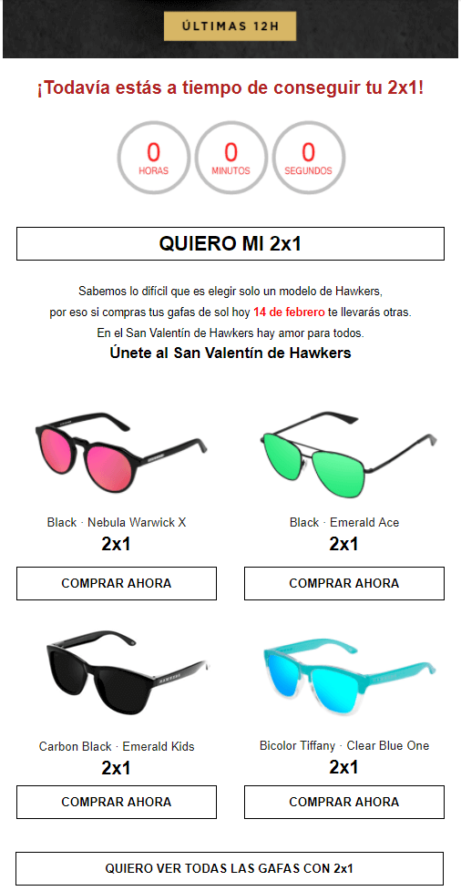 También funciona crear sensación de urgencia, utilizando expresiones como «caduca», «todavía estás a tiempo» o «últimas horas». Esto ayuda a facilitar la toma de decisiones instantánea.