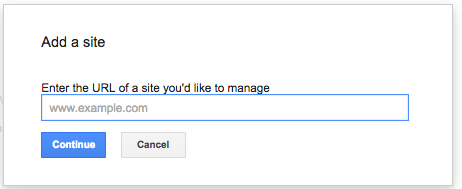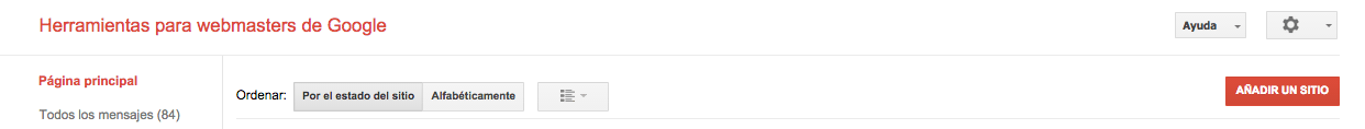 Para configurar una cuenta, lo primero que tendrás que hacer es crear una cuenta de Gmail. Con esa cuenta, podrás acceder a Google Webmaster Tools y loguearte. Una vez dentro, tendrás que pulsar el botón «Añadir sitio» que aparece en la parte superior derecha de la pantalla e introducir la URL del dominio que pretendes añadir.
