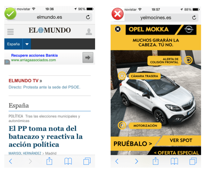 - No utilizar formatos de publicidad que dificulten la navegación como los interstitials.