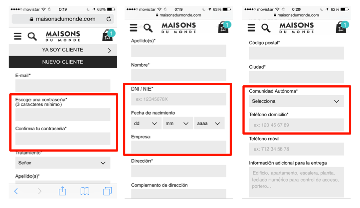 - Usar datos existentes siempre que estén disponibles. Por ejemplo, usuarios ya registrados, prerrellenar los campos y pedir confirmación o usar datos de localización del GPS siempre que el usuario lo permita.