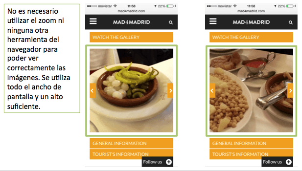 Asegurarse de que el tamaño de letra es el adecuado y que el usuario NO tendrá que hacer zoom.