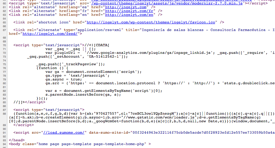 Por ejemplo, tenemos las versiones Español e Inglés para toda nuestra web, lo cual se traduce en algo como lo que sigue para cada una de las páginas: