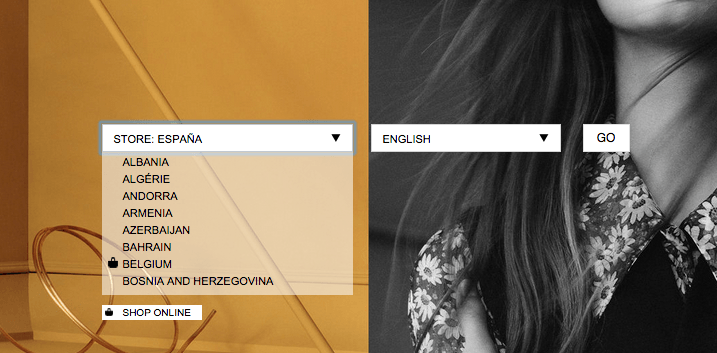 Para aquellos casos en los que exista alguna página en la web que no apunte a ningún idioma concreto, Google nos pide que utilicemos el etiquetado rel=»alternate» hreflang=»x-default». Este tipo de página, para que os hagáis una idea, suele ser la clásica página de la home en la que se muestra un selector de idioma o región y se pide al Usuario que haga la selección oportuna. Podéis ver un ejemplo de esto en la web de Zara, eso si, siempre que no hayáis entrado previamente a compraros algún antojo, porque sino os redirigirá a la página de vuestra región correspondiente de forma automática.
